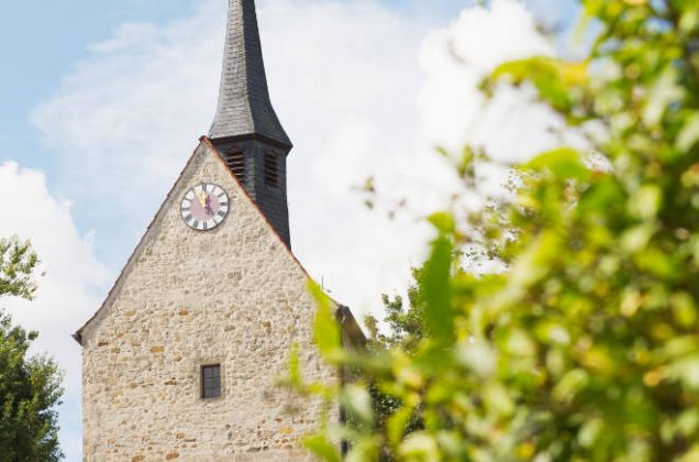 Der heutige Kirchenbau geht auf eine steinerne Kirche zu Ehren der Muttergottes aus dem Jahre 1200 zurück. Hierbei handelte es sich um eine Filialkirche Fechheims, von wo aus sie von einem Kaplan betreut wurde. Ab 1529 wurde die Kirche evangelisch und 1531 ein eigenes Pfarramt.